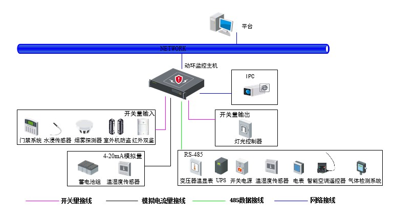 ●最新的485協(xié)議動態(tài)庫,業(yè)界領(lǐng)先。設(shè)備接入方式支持:UPS、開關(guān)電源、交流電表、溫度濕度傳感器、氣體檢測系統(tǒng)、空調(diào)控制器、變壓器溫顯表、蓄電池組、門禁控制器、熱交換設(shè)備、位置服務(wù)模塊、發(fā)電機(jī)組、低壓配電設(shè)備、新能源供電系統(tǒng)、鐵塔UPS設(shè)備、直流電表、分路計(jì)量設(shè)備、鍵盤。