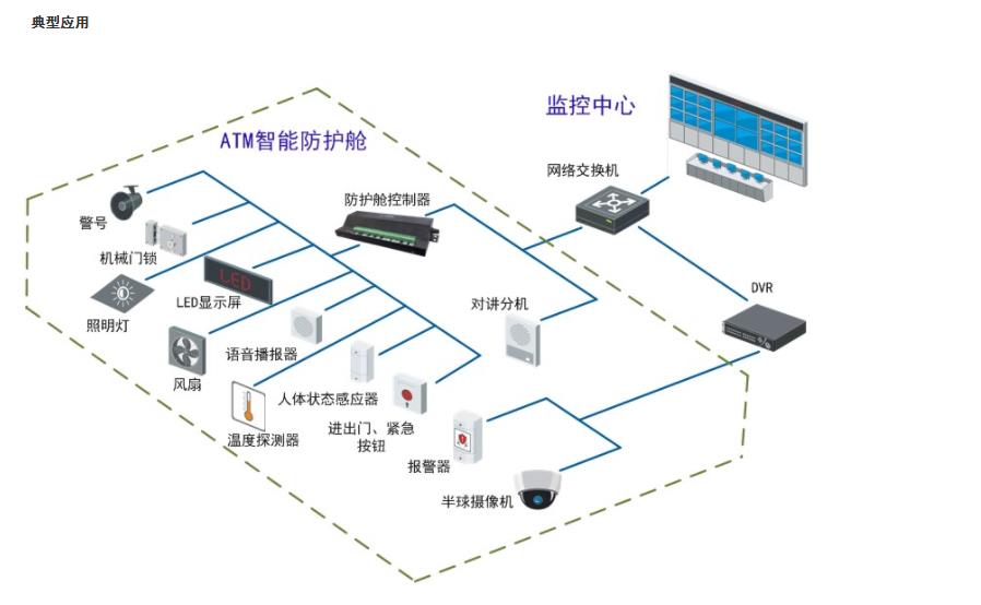 ATM機防護艙控制器,是一款集成開關量信號輸入、繼電器干結點輸出、警號輸出、本地語音輸出、本地揚聲器、LED屏幕顯示、遠程網絡控制和管理、3G通信為一體的多功能網絡控制器;支持進出門按鈕信號、電鎖鎖頭信號、門狀態(tài)信號、紅外或者幕簾探測器信號輸入,適用于ATM機防護艙控制。