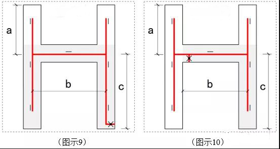 圖示9中,最長(zhǎng)側(cè)排煙風(fēng)管所保護(hù)走道的最大走道長(zhǎng)度L2=b+2c(c≥a);