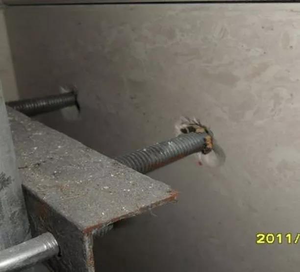 (2)、圓鋼直徑、搭接長度不滿足規(guī)范、設(shè)計(jì)要求。