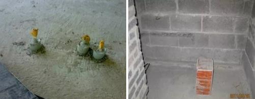 預(yù)留預(yù)埋線管管頭沒有做臨時(shí)封堵,管端部破壞嚴(yán)重。