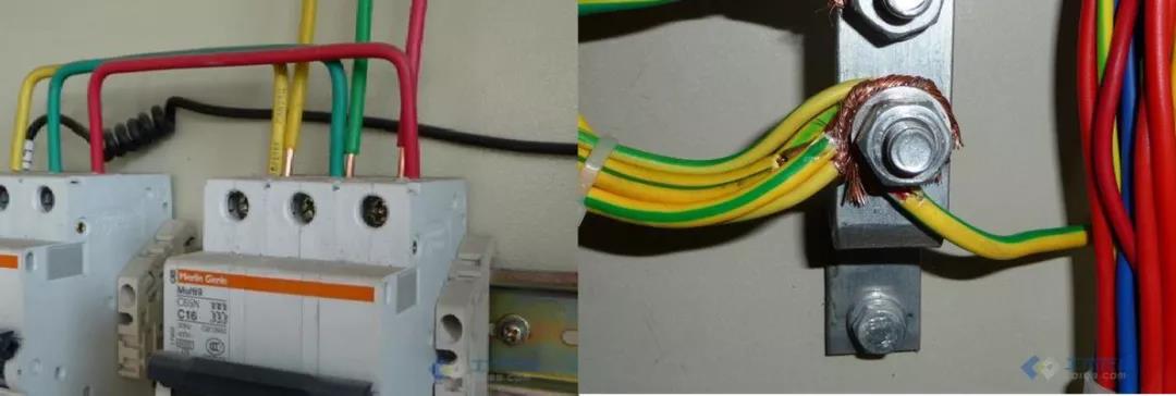 箱內(nèi)配線不整齊,線頭裸露,端子接線數(shù)量多于2根。