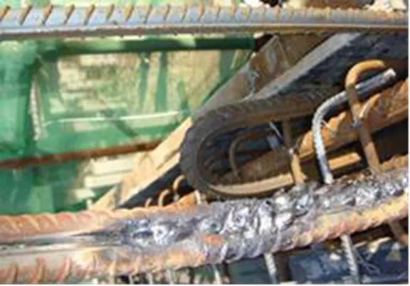 (2)、將焊接質(zhì)量不合格部位重新進(jìn)行焊接,嚴(yán)格按照施工工藝要求進(jìn)行施工,焊接完成后要清理焊渣,不應(yīng)出現(xiàn)漏焊、夾渣、咬肉等質(zhì)量缺陷,保證搭接長度滿足規(guī)范要求。