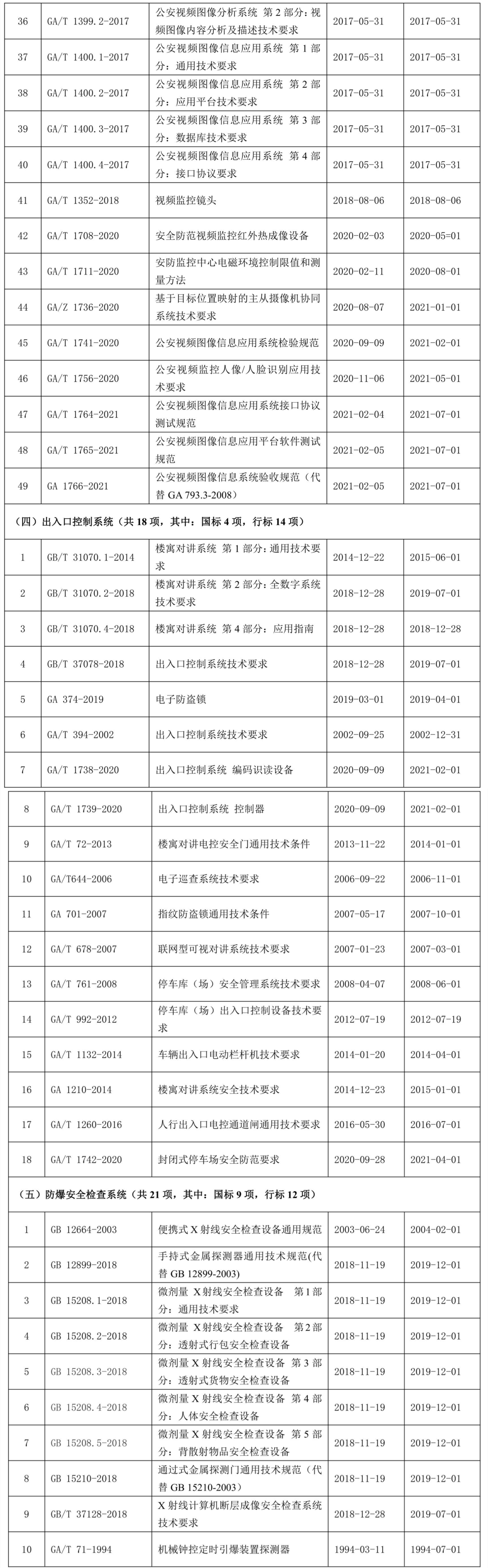 全國安全防范報(bào)警系統(tǒng)標(biāo)準(zhǔn)化技術(shù)委員會(huì)現(xiàn)行標(biāo)準(zhǔn)目錄