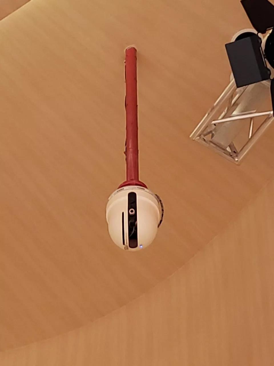 由于建筑消防技術規(guī)范的修訂升級,現(xiàn)在大劇院和音樂廳觀眾廳、舞臺、大堂這些凈空較高、不宜采用其它自動滅火設備的區(qū)域,必須安裝自動消防水炮。它長得如下圖所示。