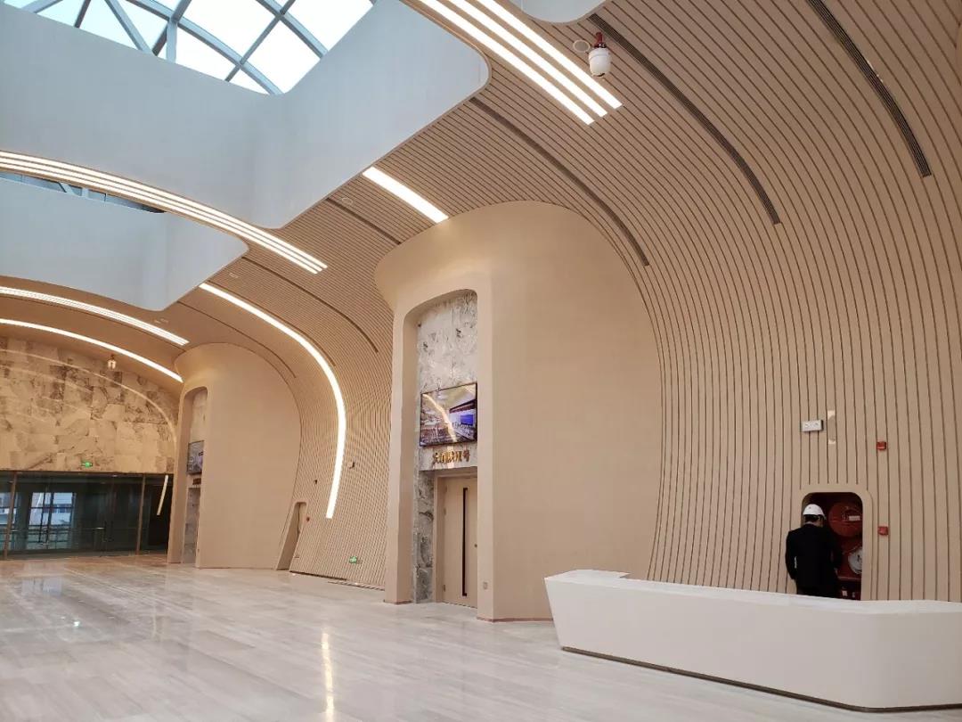 由于消防技術規(guī)范的要求,大劇院和音樂廳天花、墻面只能采用不燃的A級防火材料,項目采用了近幾年劇院逐漸流行使用的主流材料~高面密度GRG材料,墻面天花一體成形,不再采用性能差或防火等級沒法滿足要求的木材、普通石膏板等改造前場館裝飾所使用的材料,顯著提升了綜合質(zhì)量,使用壽命也更長。