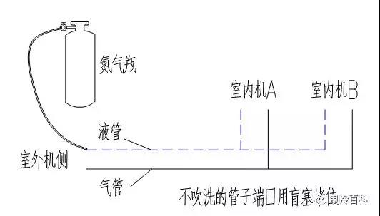 5、檢查氮?dú)馐欠裢ㄟ^(guò)A室內(nèi)機(jī)側(cè)的液管。