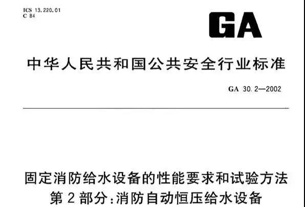 《GA30.2-2002:固定消防給水設備的性能要求和試驗方法》