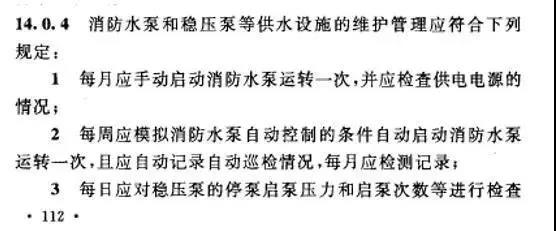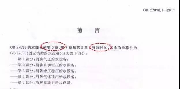 在各個部分標準的前言中,均對該國標的強制執(zhí)行與推薦執(zhí)行部分進行了劃分,在各個國標第5章內(nèi)容描述了對固定給水設備的控制要求,屬于強制執(zhí)行部分。其中均提到的對消防泵巡檢的要求。下面截取了標準中的描述: