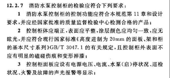在第12.2.7.3章節(jié)中,提出消防水泵控制柜面板應設置巡檢狀況顯示,由此可見,消防水泵控制柜需要進行巡檢,實時反饋巡檢狀況。