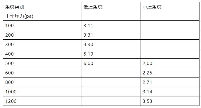 表5風(fēng)管單位面積允許漏風(fēng)量(m3/h.m2)