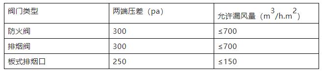 表1防火排煙閥允許漏風(fēng)量
