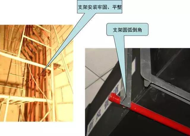 質量控制要點:支架安裝牢固,成排支架應排列成線、標高一致。