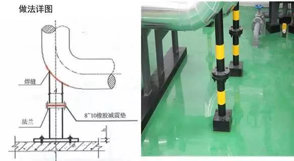 根據(jù)管道公稱直徑大小,選擇不同厚度的鋼板,加工成肋板,校正管道的垂直度,先將肋板底端焊接固定到管道周圍的支架上,再將肋板側面與管道焊接,檢查焊縫,再次校正管道垂直度,無誤后,刷防銹漆、面漆,設計要求保溫的進行管道保溫。