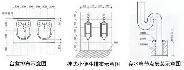 1、衛(wèi)生器具安裝:根據(jù)衛(wèi)生器具規(guī)格、間距及排水管位置進行排布,使器具與排水管、配件與墻面磚騎縫或居中。水嘴出水口宜于臺盆落水口上下對正。排水管應垂直,成排存水彎應朝向一致,存水彎與排水管間隙用瀝青麻絲填塞密實后加不銹鋼裝飾圈,地漏應避開人上廁所時常站的地方,且距板塊中間對稱設置。