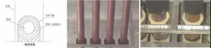 質量控制要點:橡塑管(板)與管托粘接、卡環(huán)處預留寬度。采用木托時,防腐處理應到位。管托厚度不得小于絕熱層厚度,接點緊密,表面平整,不得有冷熱橋現(xiàn)象。