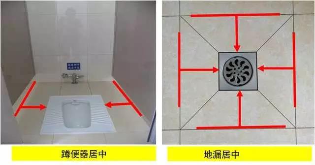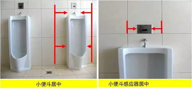 質量控制要點:器具、排水管、配件等與墻、地面磚居中、對縫,周邊打膠光滑密實。成排器具安裝應排列整齊,高度一致,間距均勻。