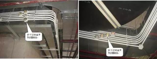 質量控制要點:支吊架間距均勻,彎曲半徑符合要求,電管安裝橫平豎直、固定牢固、排列整齊、內(nèi)壁光滑無毛刺,接地良好。