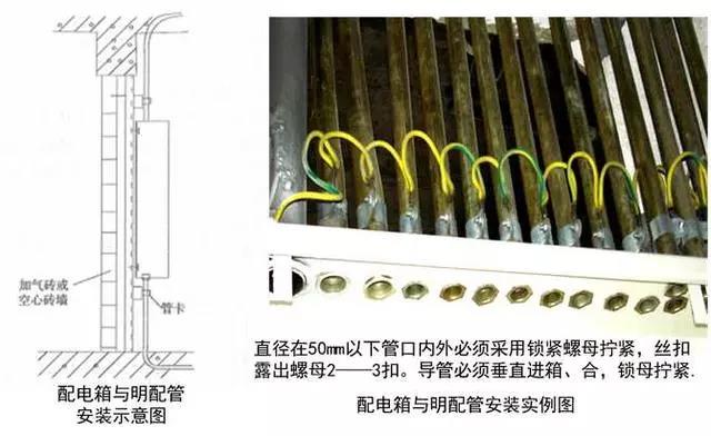質量控制要點:管口光滑,開孔尺寸與線管一致,固定牢固,接地可靠。