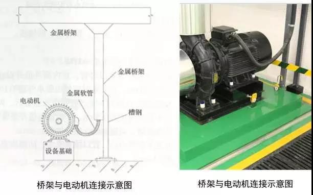 1、電源配管連接:根據(jù)電動機接線盒位置敷設電源管,成排電動機接線盒宜同向排列。電源敷設在靠近接線盒的方向,管口離地高度宜≥300mm,低于電動機接線盒中心100~200mm,室外電源管高度與接線盒中心一致,管口安裝防水彎頭。在距管口50~100mm處焊接接地螺栓。軟管管徑應與電源管同徑,軟管應留有適當余量,兩端采用專用管接頭盒專用盒接頭連接。導線壓倒接線盒內(nèi)的接線端子上。電動機底座、電源管應與接地母線可靠連接。
